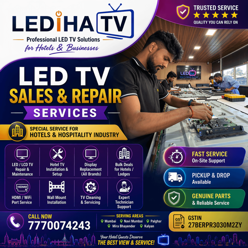 (Founded By Ex-Sony and Lg Engineer) Are you looking for to find an excellent LED TV repair company in Mumbai? If so, you've reached at the right firm (service Center). Ledihatv has established itself as one of Mumbai's top LED TV service providers. The goal of our company is to serve you with the most long-lasting, trustworthy repair service at a reasonable cost. Our Experts and qualified well trained employees can handle any problem with care with simplicity and efficacy. nearby TV maintenance shop